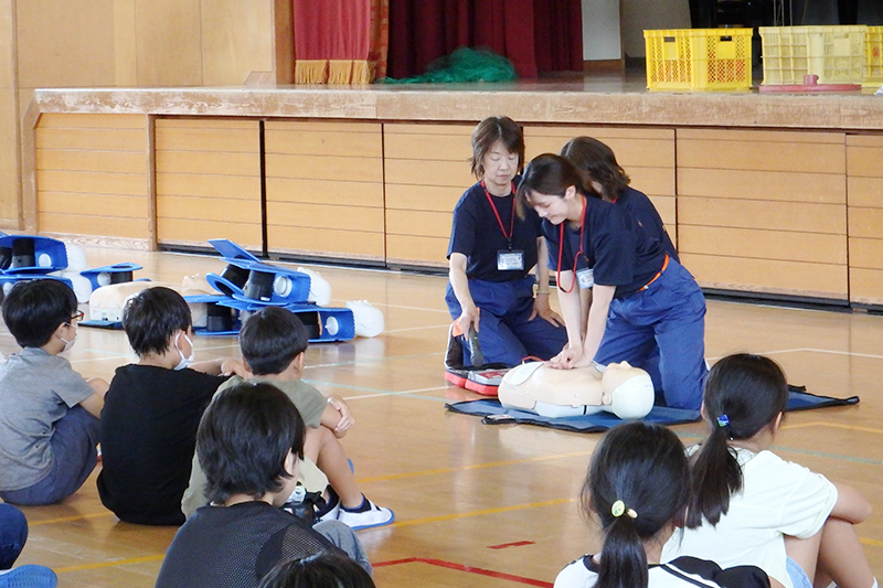 地域の女性消防団に所属して市民の防災意識を高める活動をしています。主に、救命士と一緒に企業や市民の方々に向けた応急処置の講習や、地域の高齢者のご自宅を訪ねて防災啓発を行っています。