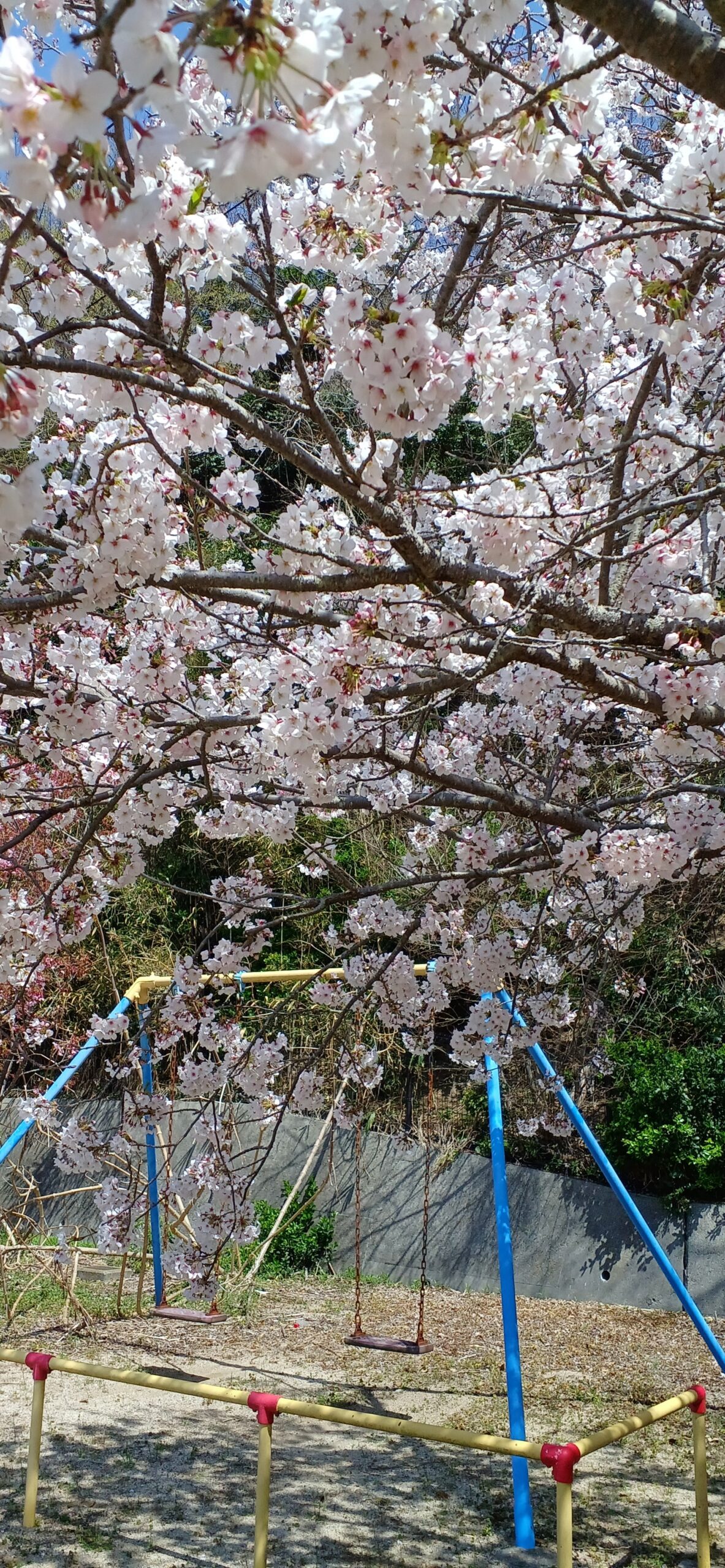 興居島に行った時、昔からあるブランコとサクラの組み合わせが、初めて見る景色にもかかわらず懐かしい気持ちになりました。誰もいない公園にあるのも秘密基地のようでした。