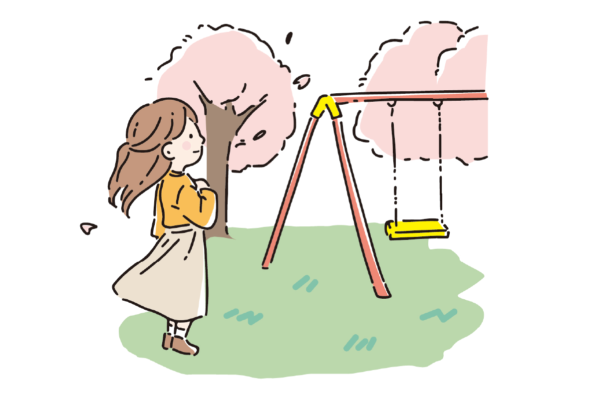 興居島に行った時、昔からあるブランコとサクラの組み合わせが、初めて見る景色にもかかわらず懐かしい気持ちになりました。誰もいない公園にあるのも秘密基地のようでした。