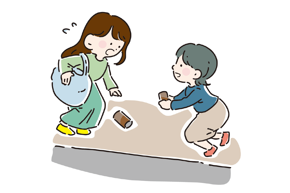 お買い物をした後、なぜか、荷物の中から缶コーヒーが飛び出して、地面を転がりました。追いかけようとした瞬間、もう1缶転がり、慌てる私の姿を見た通りがかりの人が、手伝ってくれて、道路にはみ出る前に拾うことができました。さすが松山市民だと嬉しかったです。