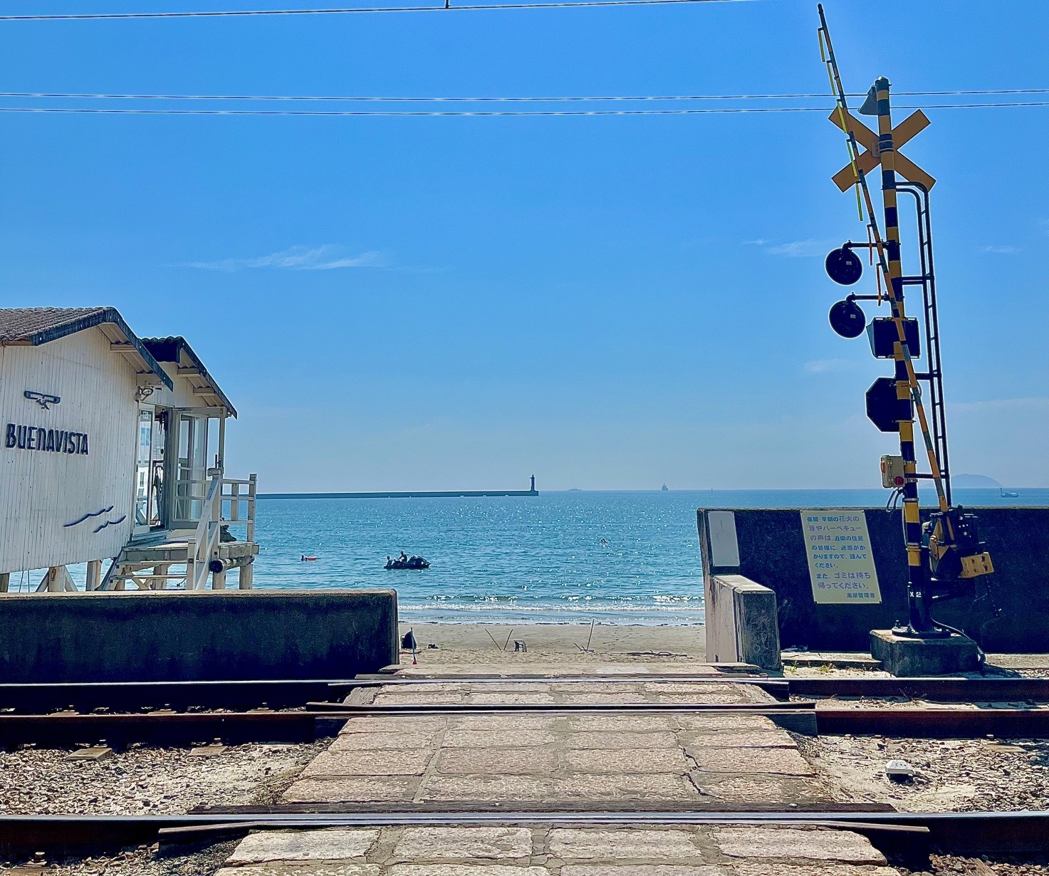 波の音と電車の発着音がとても心地よく、ごちゃごちゃ忙しい頭の中を整理してくれます。